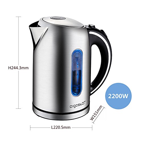 Aigostar King – Bollitore Acqua Elettrico in Acciaio inox 100% con Indicatore illuminazione blu del livello dell’acqua…