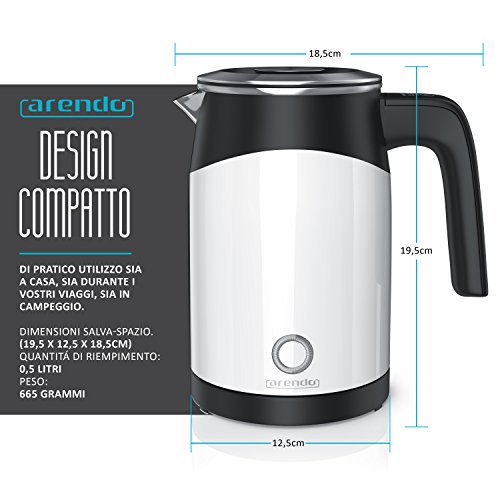 Arendo – Bollitore elettrico da mezzo litro modello Single – Mini bollitore – Capacità 0,5l – 5 livelli di temperatura…