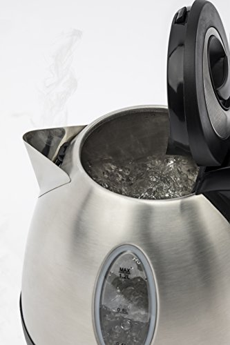 H.Koenig BO12 Bollitore, Spegnimento automatico, Acciaio Inox, Base di rotazione a 360°, 1,2L, 1630W